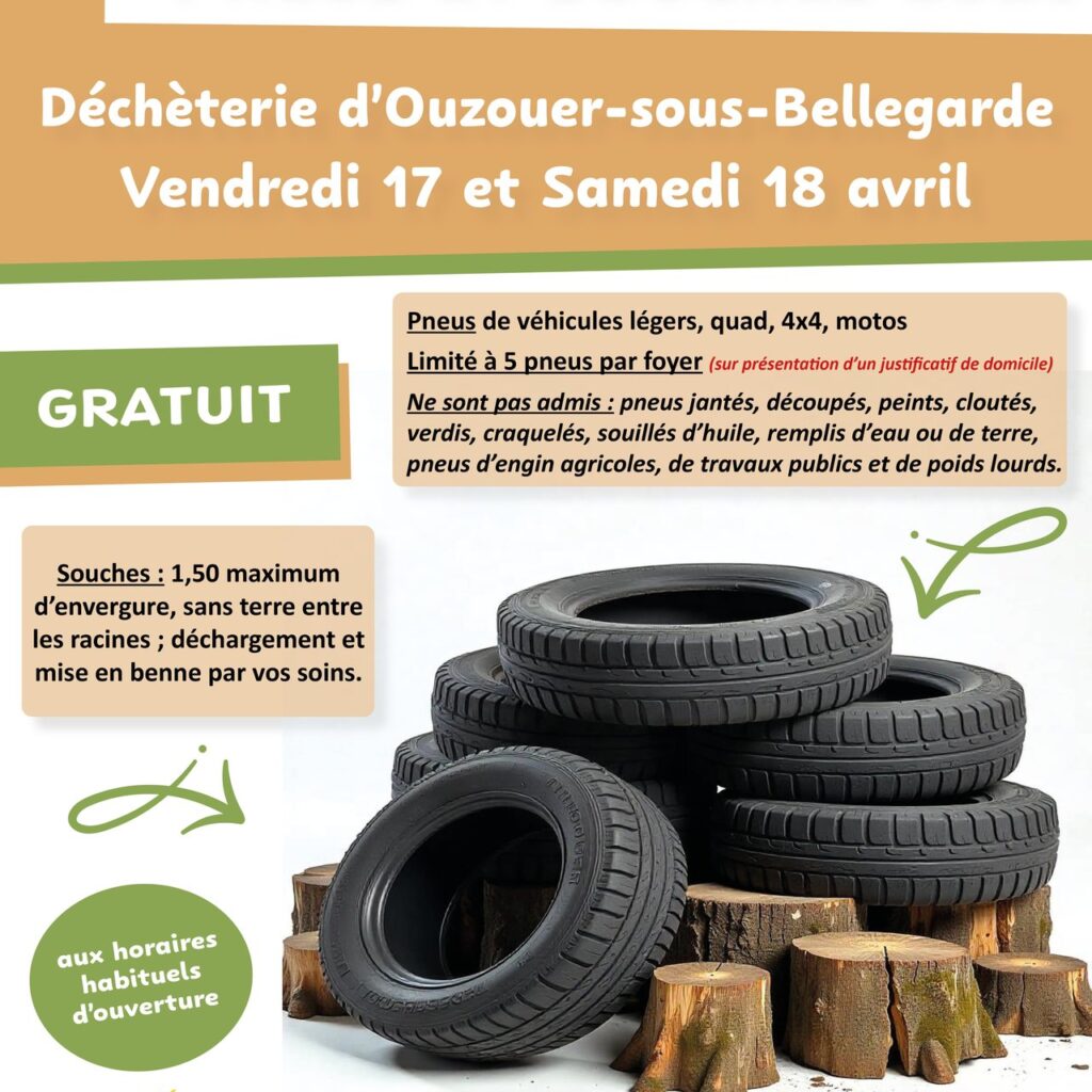 • Collecte exceptionnelle pneus et souches 2026